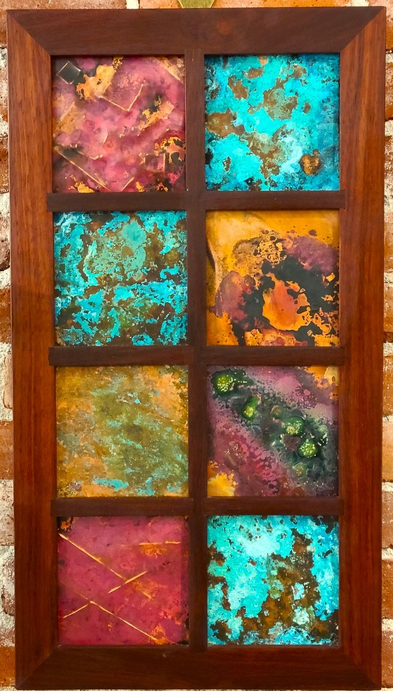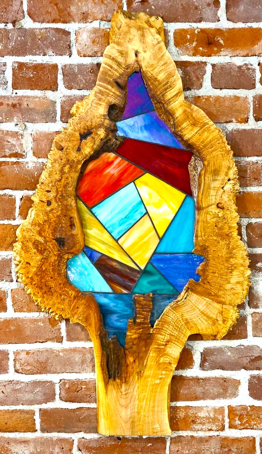 Stained Glass Waterfall with Live Edge Hemlock Frame